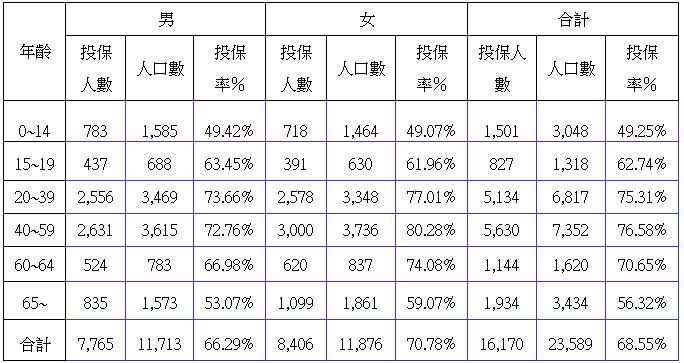 台灣人口投保人壽保險投保率統計表