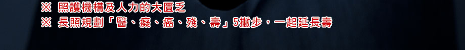 【即將上線,敬請期待】-照護機構及人力的大匱乏 長照規劃「醫、癡、癌、殘、壽」5撇步,一起延長壽